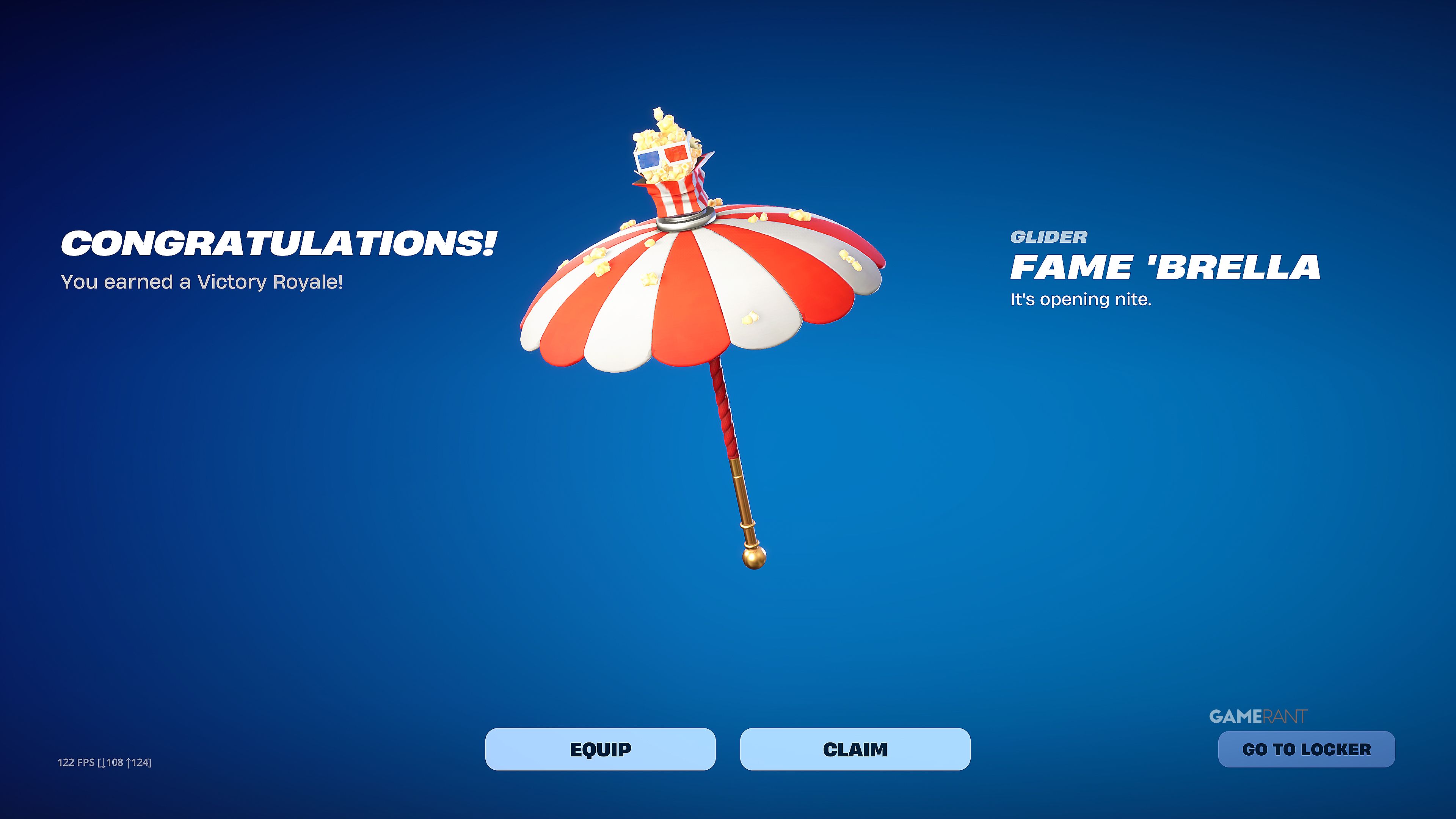 В Fortnite Chapter 7 Season 1 игроки могут получить планер Fame ‘Brella бесплатно! Чтобы его разблокировать, вам нужно просто выиграть матч – получить Victory Royale – в Battle Royale или Zero Build. Как только вы победите, будь то в одиночку или в составе отряда, Fame ‘Brella станет вашим, когда вы вернетесь в главное лобби.