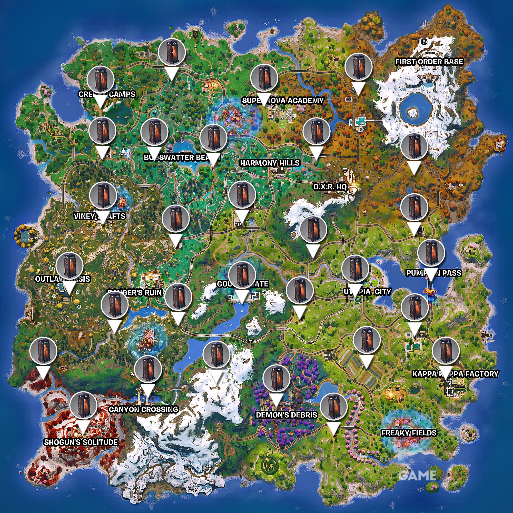 Вот несколько заметных мест, где вы можете найти Stalkbox во время Fortnitemares: