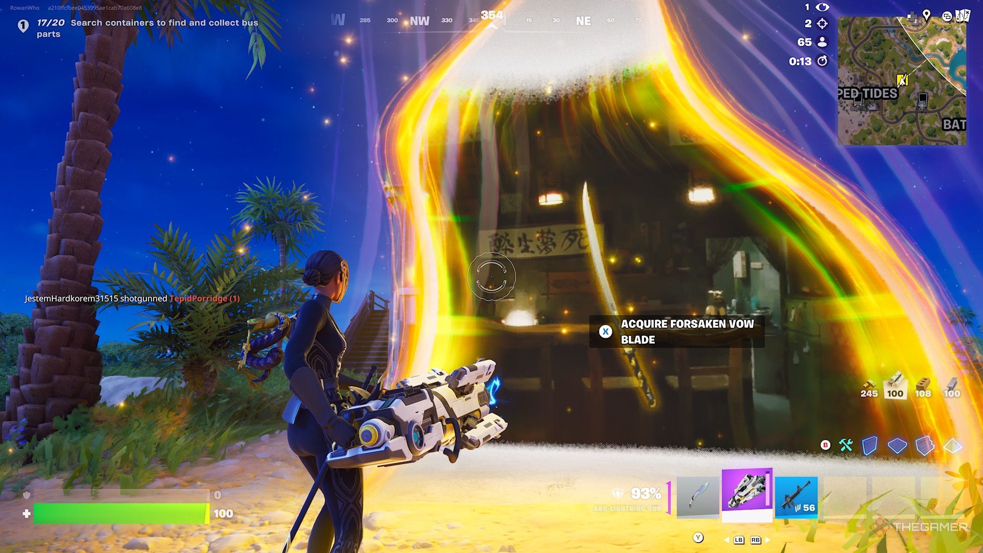 Одним из крутых новых предметов в Fortnite Chapter 7 Season 1 является клинок Forsaken Vow Blade. Он сочетает в себе лучшие части Typhoon Blade и Kinetic Blade. С его помощью вы можете быстро совершать рывок вперед до трех раз, наносить быстрые удары в ближнем бою и удивлять противников серией стремительных атак.