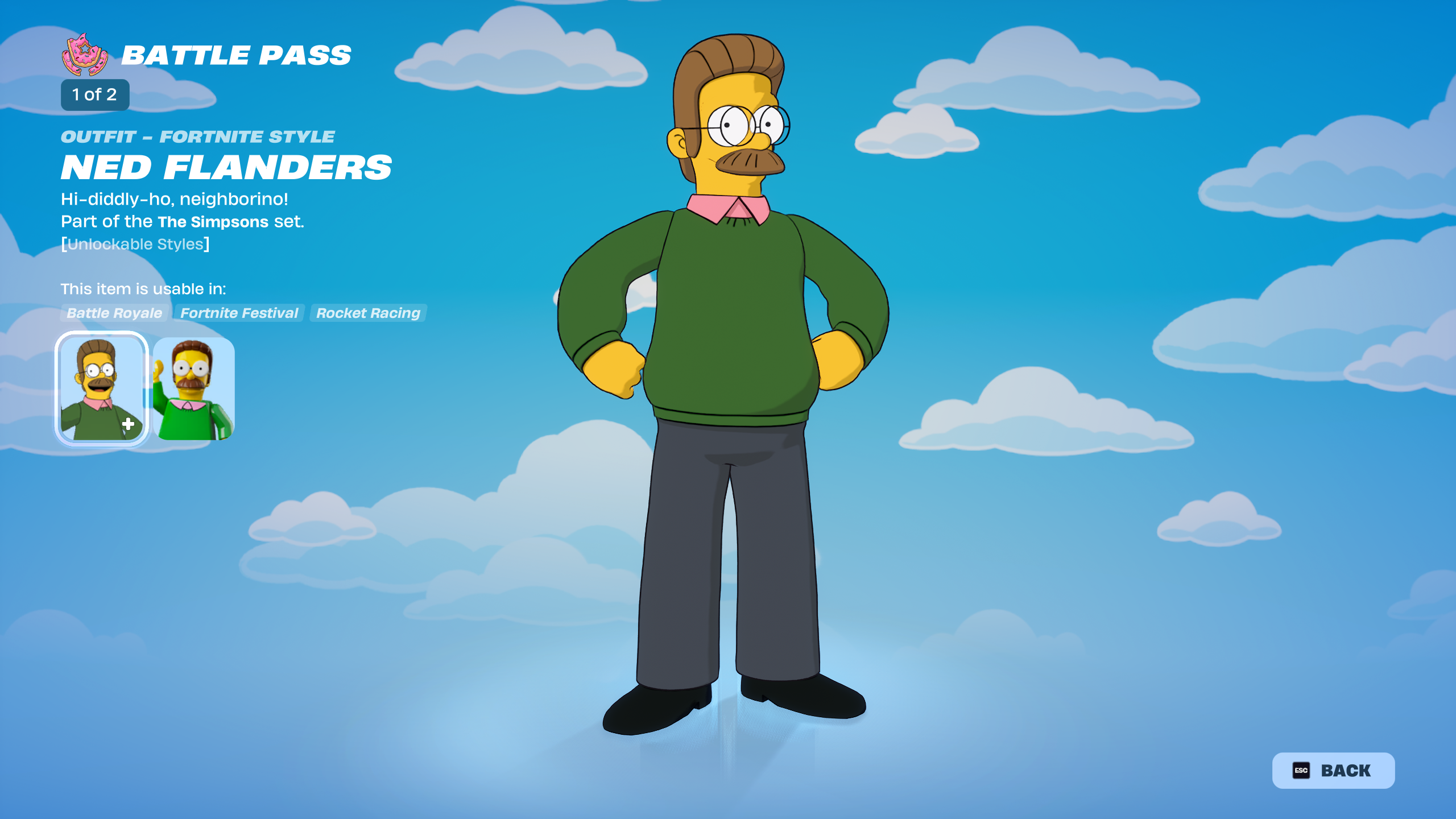 Нед Фландерс доступен в качестве награды в текущем Battle Pass. Если вы приобретете премиум Battle Pass за 1000 V-Bucks, вы сможете открыть его, играя и повышая уровень. Вы найдете Неда Фландерса на Странице 5, как только достигнете 26-го уровня. Также доступен специальный стиль ‘Stupid Sexy Flanders’ – вы можете открыть его, получив все награды на Странице 6. Так что, если вы поклонник Неда Фландерса, начните зарабатывать эти уровни!