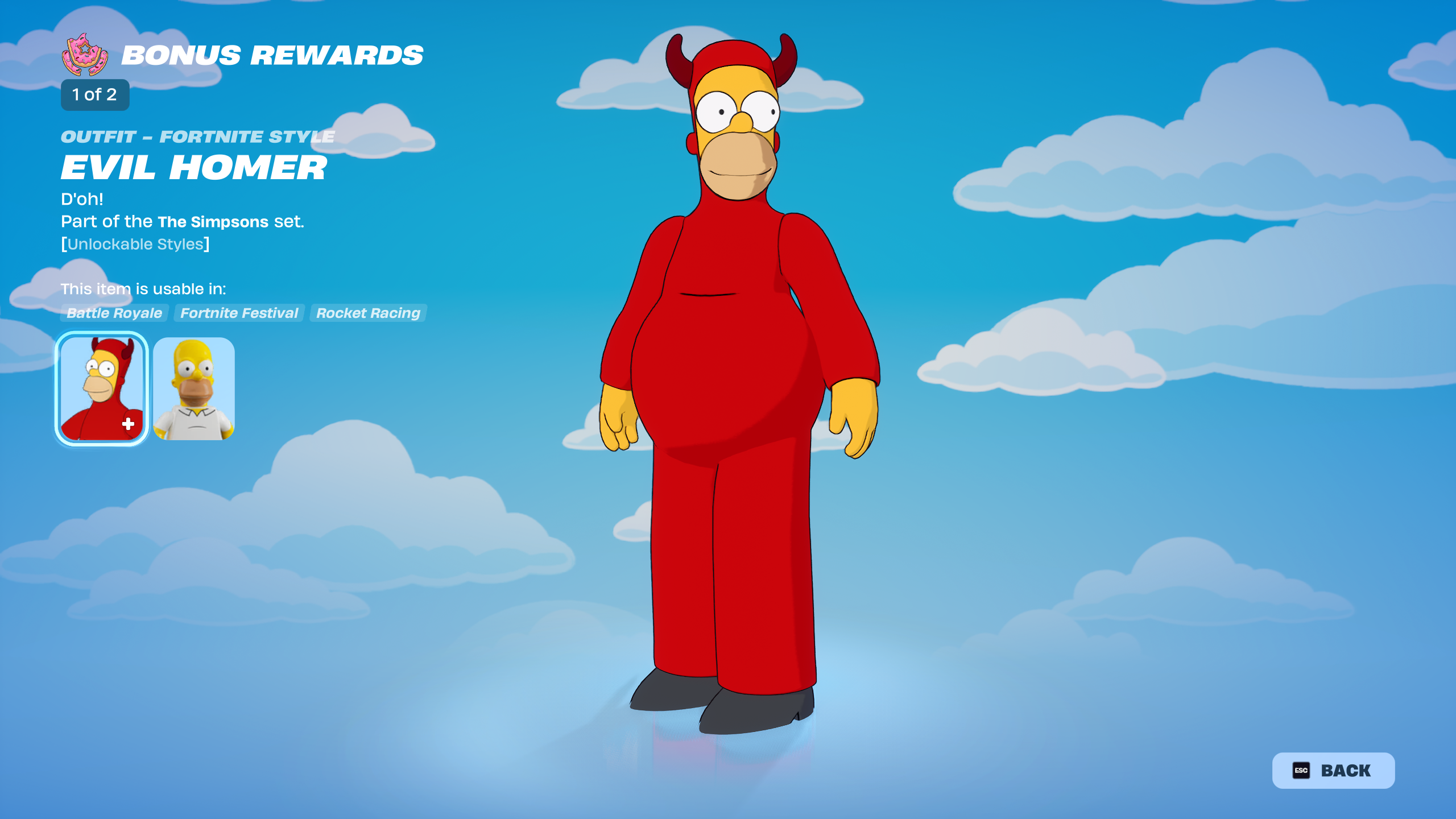Барт Симпсон — первый персонаж из The Simpsons, который будет доступен в Магазине предметов, начиная с обновления магазина 1 ноября в 20:00 по восточному времени. Он оснащен специальным механическим костюмом, чтобы соответствовать размеру для Battle Royale, и вы можете получить его в комплекте, который включает в себя Jam Track с темой The Simpsons, написанной Дэнни Эльфманом.