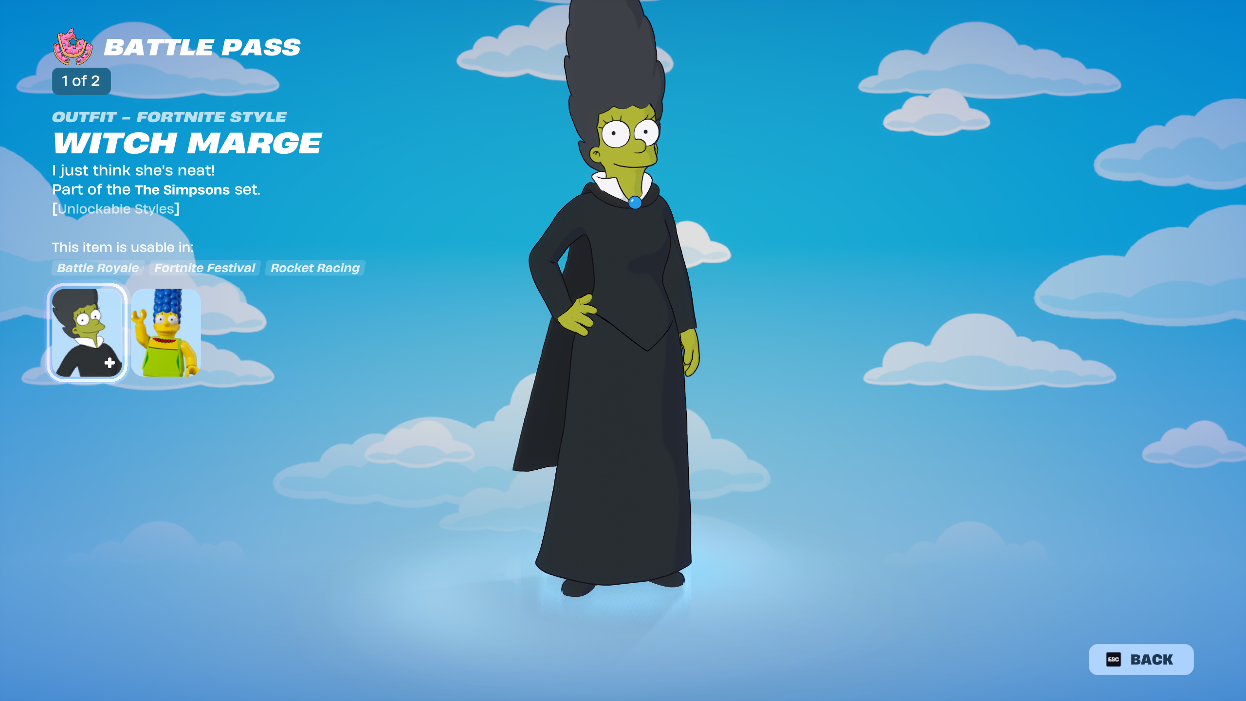 Мардж Симпсон — один из самых простых персонажей, открываемых в Fortnite. Во время сезона Симпсонов (Глава 6, Сезон 2) вам нужно лишь достичь 7-го уровня. Затем вы можете приобрести Премиум Боевой Пропуск за 1000 V-Bucks и получить все на первой странице — Мардж Симпсон является последней наградой там! Развлечение не заканчивается ее основным обликом; вы можете открыть стиль Ведьмы Мардж, продвигаясь дальше на Странице 2 Боевого Пропуска.