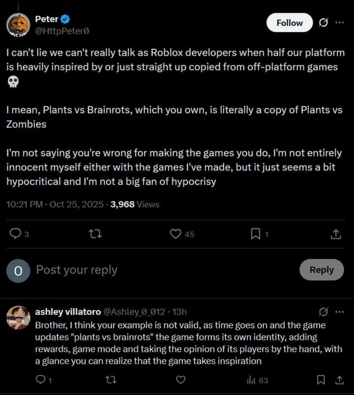 Джандел недавно опубликовал сообщение в X, утверждая, что Pandvil скопировал игровые ресурсы без разрешения, даже до запроса лицензии. Он говорит, что Pandvil признал, что создал клон игры с намерением изменить его позже, даже после того, как ему сказали, что лицензия не будет предоставлена. Джандел считает, что это создает опасный прецедент: разработчики могут просто брать существующий контент, созданный другими, копировать его, а затем пытаться лицензировать или изменить его после этого. Он утверждает, что это нарушает принципы ответственной разработки в виртуальных мирах, где новые творения должны строиться на оригинальных идеях, а не на прямых копиях.